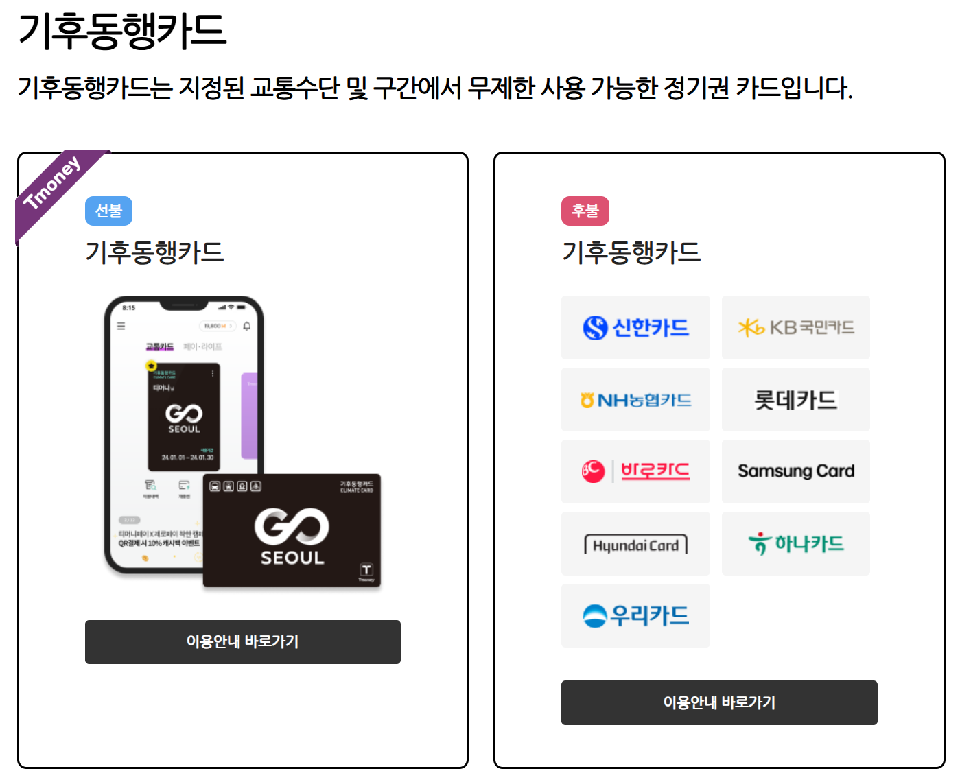 | 실물 기후동행카드 | STEP 1 | '티머니 카드&페이' 홈페이지에서 회원가입 및 카드 등록 |