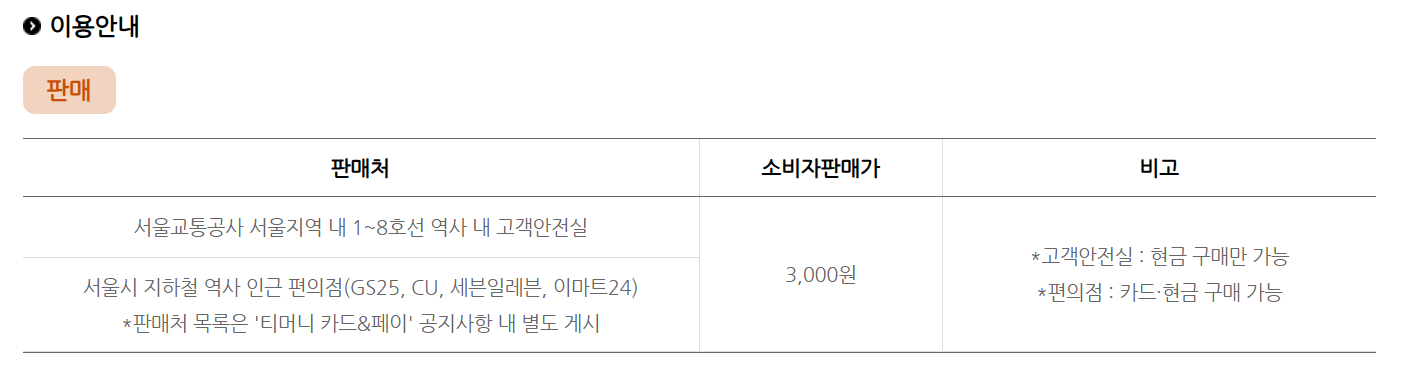 - 서울교통공사 1~8호선 고객안전실에서 현금으로 구매