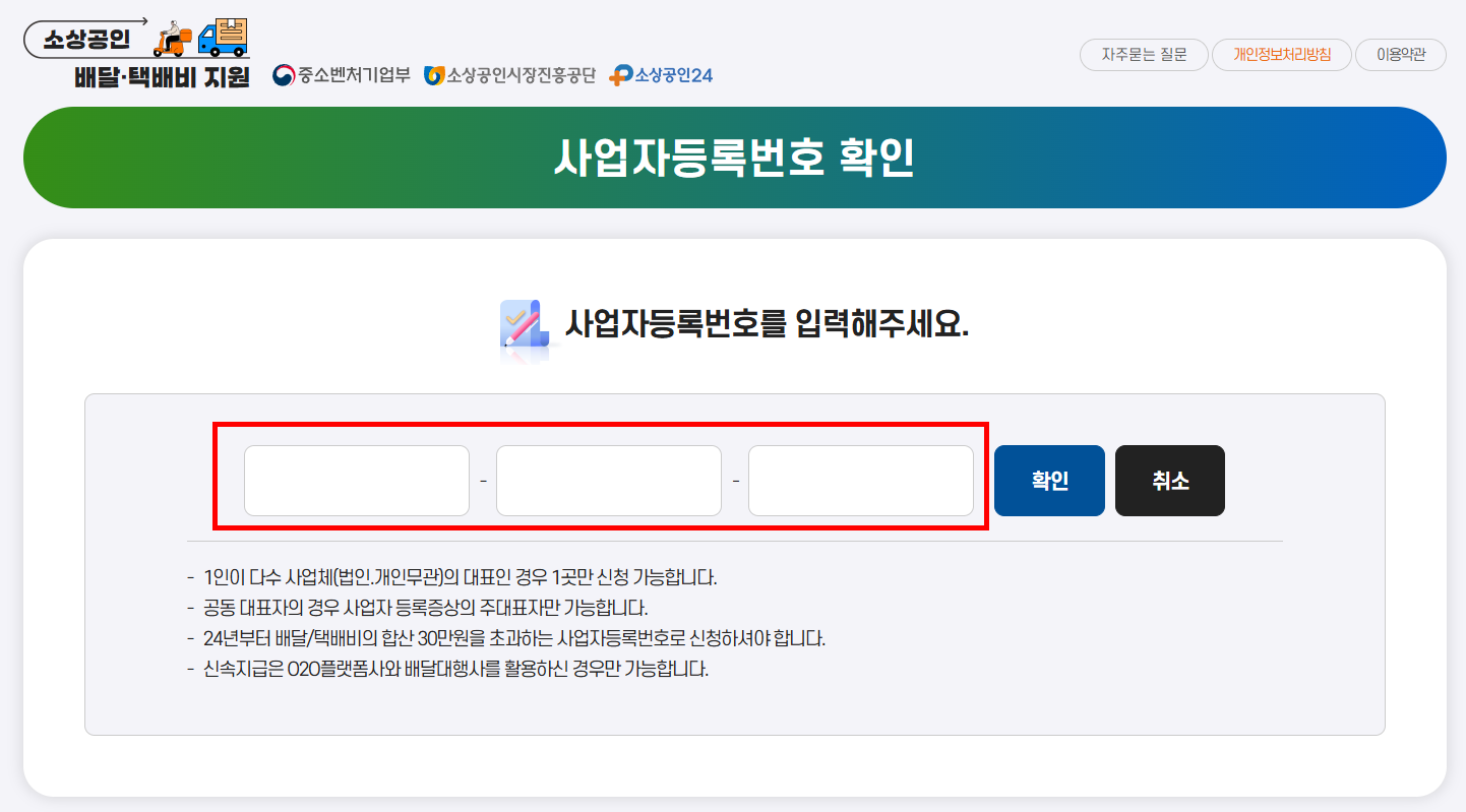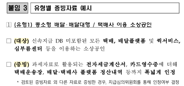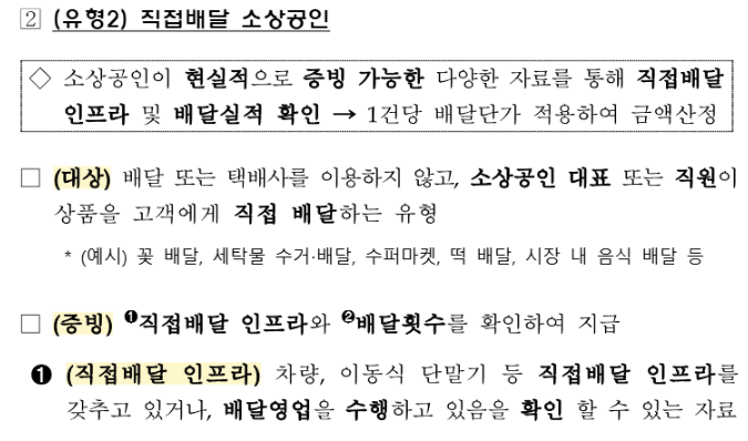 - 배달·택배 실적: 2024년 1월부터 2025년 12월 사이에 배달 또는 택배 실적이 있는 사업자