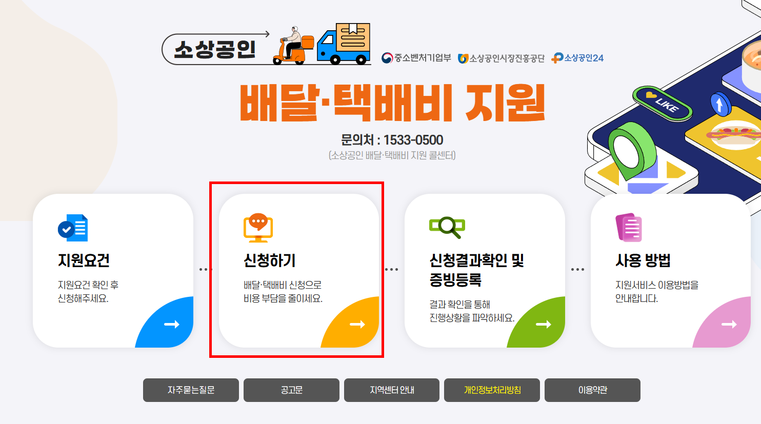 - 홈페이지: 소상공인배달택배비지원.kr