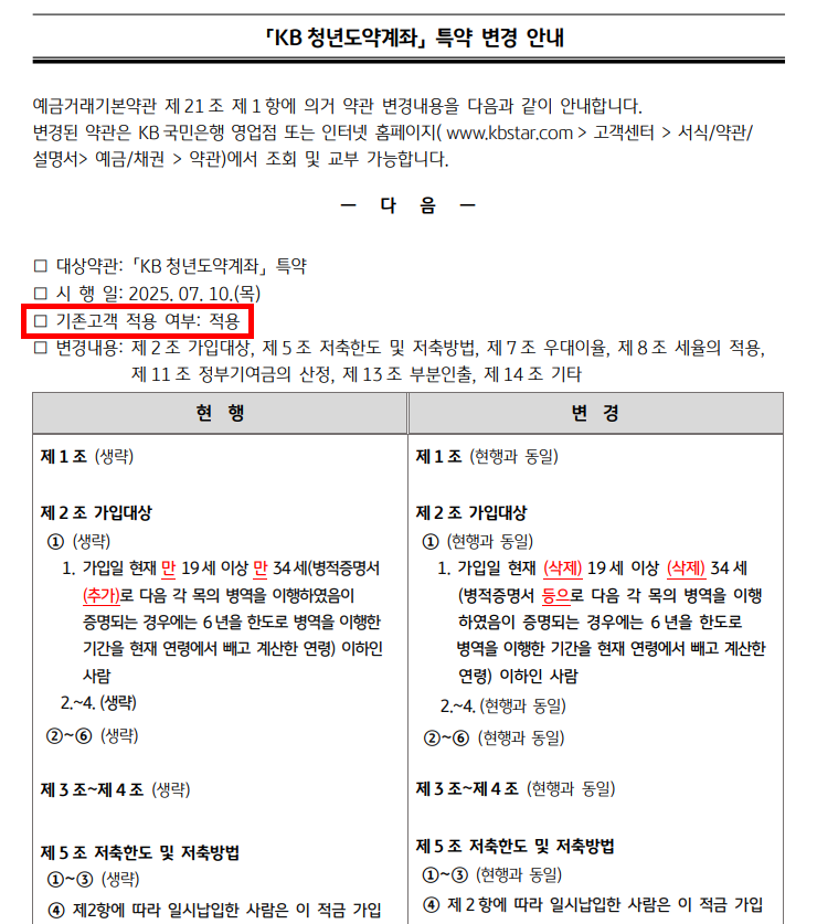 2025년 7월 10일부터 KB국민은행 청년도약계좌 약관이 일부 변경됩니다.