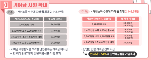 - 정부기여금 최대 연 360만 원(월 최대 40만 원 추가 지원)